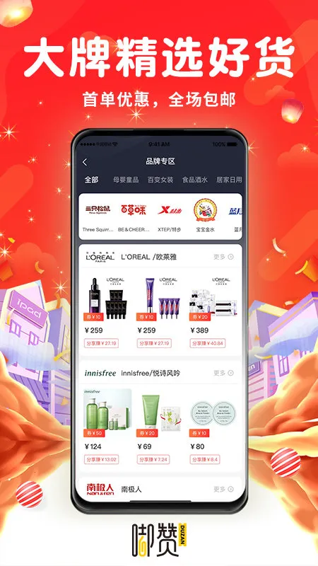嘟赞是一款电商导购平台,能提供各大平台优惠券,助用户省钱。商品种类丰富、分类详细,涵盖生鲜果蔬等。支持一键下单非接触购物,可改收货地址到附近商店提货,还能领券参与折扣活动。