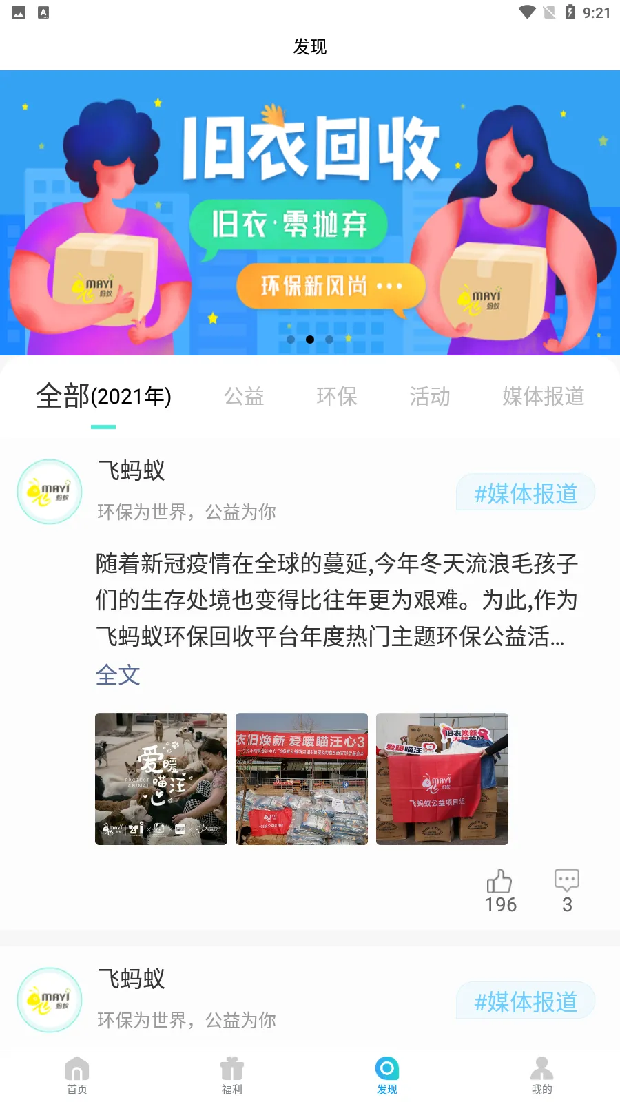 飞蚂蚁旧衣服回收平台是一款出色的环保回收软件。它由上海善衣网络科技有限责任公司推出,主要围绕旧衣服展开业务。