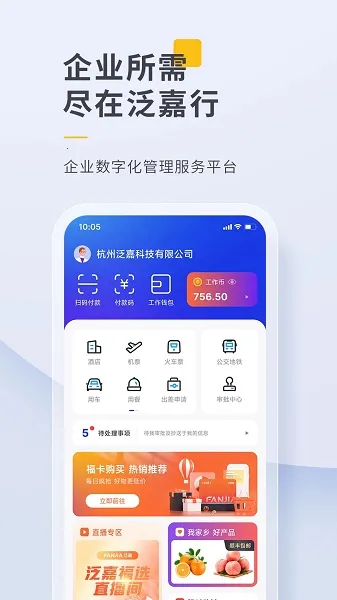 泛嘉行安卓版手机版为企业和员工带来了诸多便利。它是一款企业服务平台,集合商务出行、企业集采、员工商城等功能。