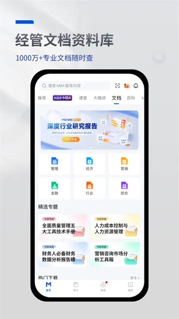 MBA智库是一款专注经济管理领域的在线学习软件。它由厦门众智创库企业管理咨询有限公司打造,聚集了超1000万企业管理者、创业者等。