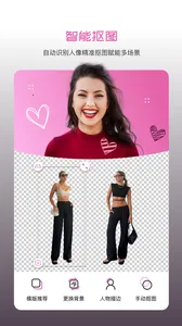 在抠图方面表现突出,能自动识别人像智能精准抠图,也有人工智能技术实现的全自动抠图换背景,包括物品抠像等,还提供手动抠图功能。完成的图片单击按钮即可保存。每次编辑时能自动增加图片对比度或饱和度,提升图像质量。总之,它是一款功能强大、操作便捷的手机修图利器,无论是日常记录还是创意图片制作,都能轻松胜任,值得一试。