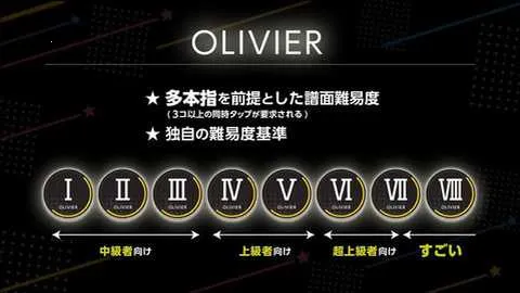 「OLIVIER」是以3只或以上手指为前提的隐藏谱面,所有歌曲皆有对应OLIVIER。