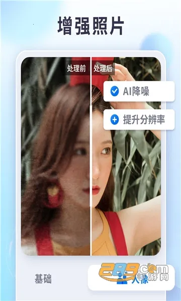 1. 强大的修复能力:能修复模糊照片,提升视频清晰度,还可处理发黄、低分辨率画质图片等,一键还原高清效果。