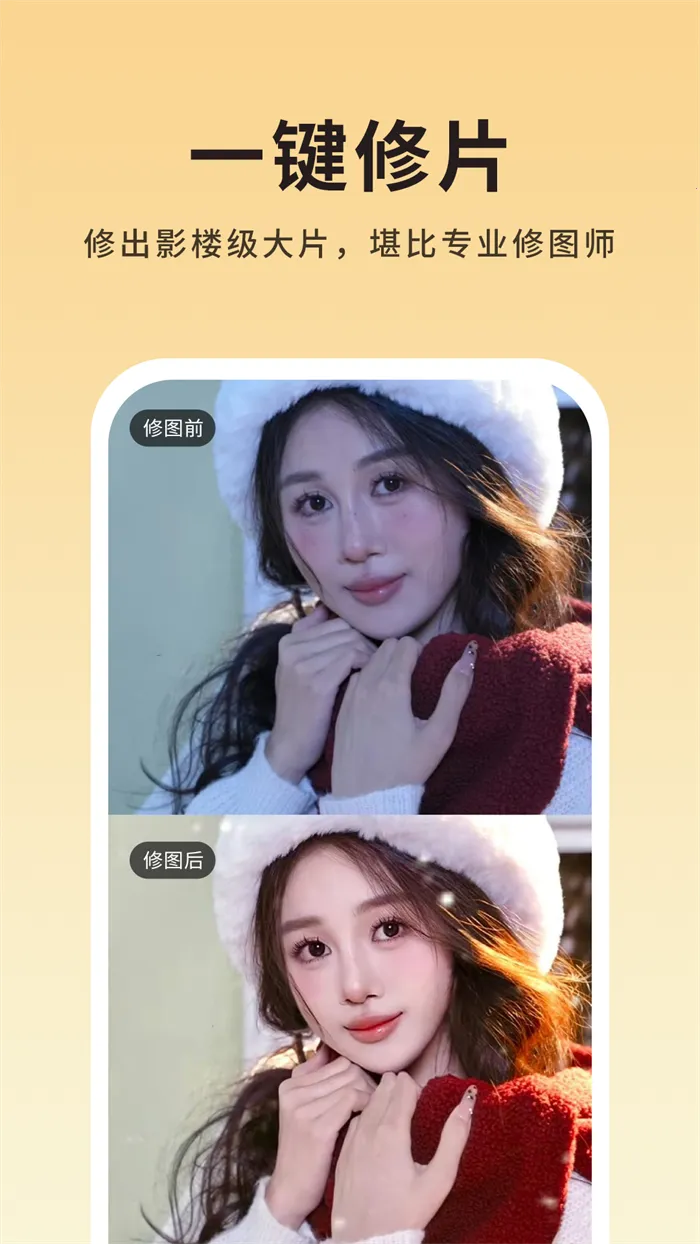 优势在于集专业姿势构图指导、海量拍照模版、一键智能修图等功能于一体,操作简单易上手,即使是新手也能轻松拍出有质感的大片。页面精致,采用大量暖色系,十分精美,适合爱拍照的人。