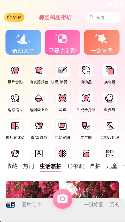 功能丰富:集专业姿势构图指导、海量拍照模版、一键智能修图等功能于一体,满足多样拍摄需求。