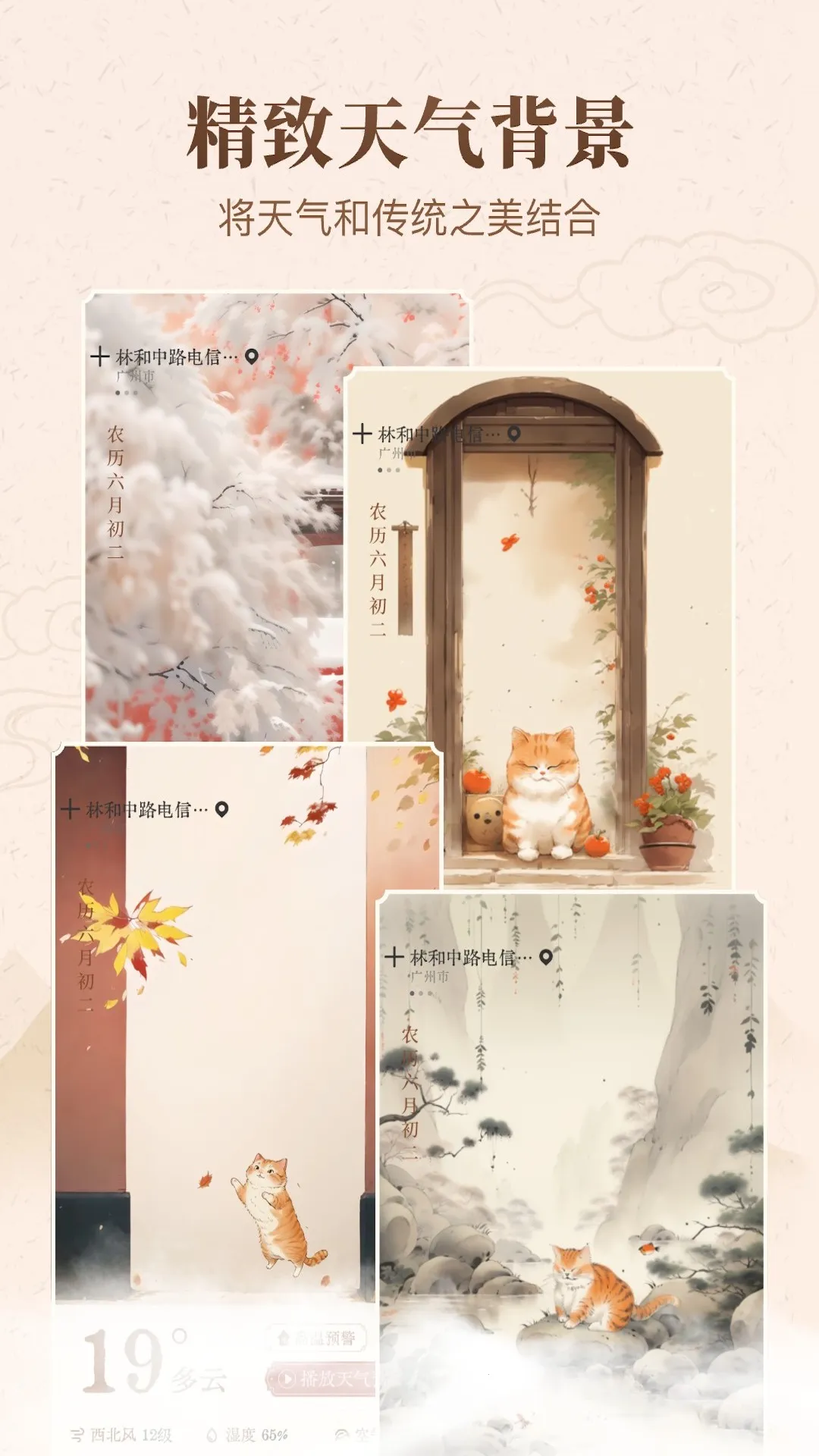 其界面设计独具特色,以古风美学为亮点,配有丰富唯美天气主题与背景,在提供实用天气信息同时,带来赏心悦目的视觉体验。