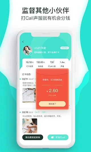 2. 助力养成自律习惯:用户能自由设定目标并坚持每天打卡完成,帮助养成更好的习惯,还可邀请朋友加入自律挑战,完成属于自己的自律挑战任务,在生活和学习中变得更加自律。