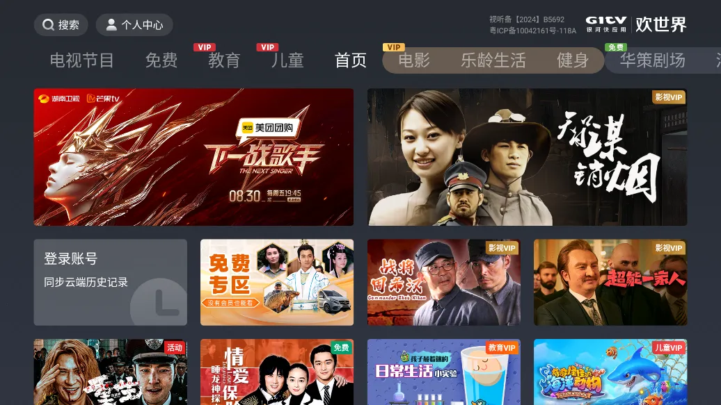 如果你想在欢世界看电视节目直播,欢世界TV版就能满足你。它是专为智能电视与安卓TV盒子用户打造的影视聚合应用。这里内置海量正版高清资源,涵盖电影、电视剧、综艺、动漫、纪录片等全类型内容,每日实时更新。其智能推荐系统能根据你的观看习惯推送影片,告别片荒。支持全网关键词搜索,查找资源超高效。还采用多维度分类体系,方便快速定位心仪内容。而且它支持4K超清播放与极速缓冲,带来影院级视听体验。有了欢世界TV版,你可以轻松观看各类电视节目直播,享受丰富多样的视听盛宴,在家就能感受追剧的快乐,满足你随时看电视节目直播的需求,让你尽情沉浸在精彩的影视世界中。