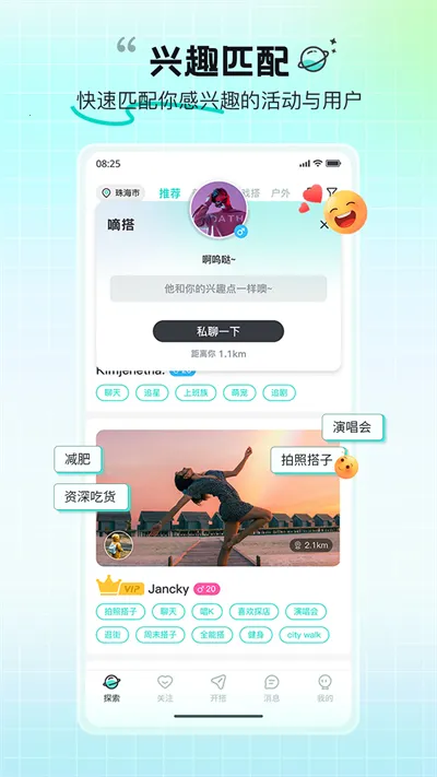 精准匹配:软件依据发布的各类帖子精准匹配,智能推送适宜的动态等,让你快速找到契合搭子。