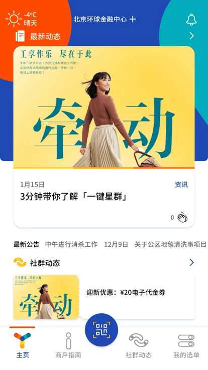 一键星群是恒基兆业地产集团推出的手机 App。它整合旗下高品质办公空间与大型商业体,满足用户多重需求。