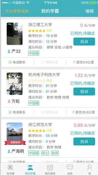 对于家长和学生来说,在这能找到全国各地名师,选择多样。老师会针对性分析规划学生学习,深度跟进进程,一对一辅导效果明显。而且方便快捷,手机电脑随时能用,足不出户省时省力。价格按分钟收费相对合理,还能跟喜欢的老师学习。