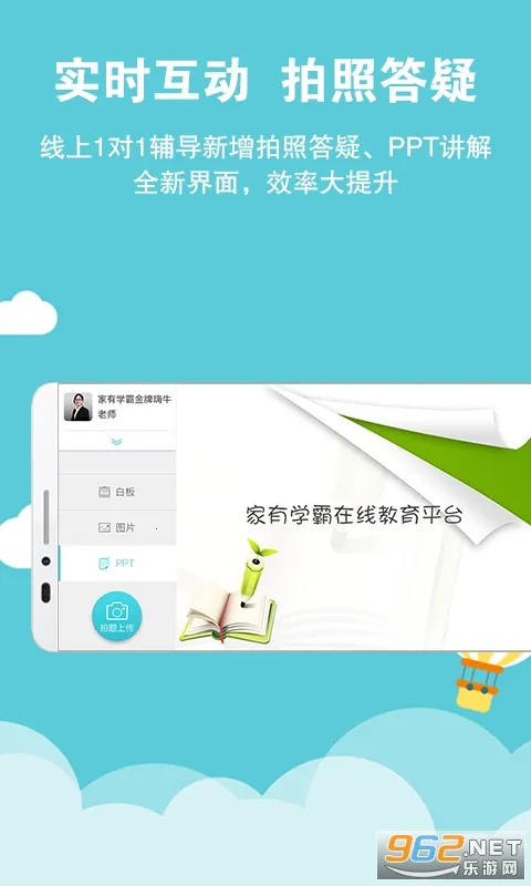 家有学霸是一款手机辅导教育学习软件,能给孩子提供真人1对1辅导,解决各种作业学科难题。它有强大的电子黑板及语音实时交互功能,汇集全国200多所顶级名校上门辅导团队。