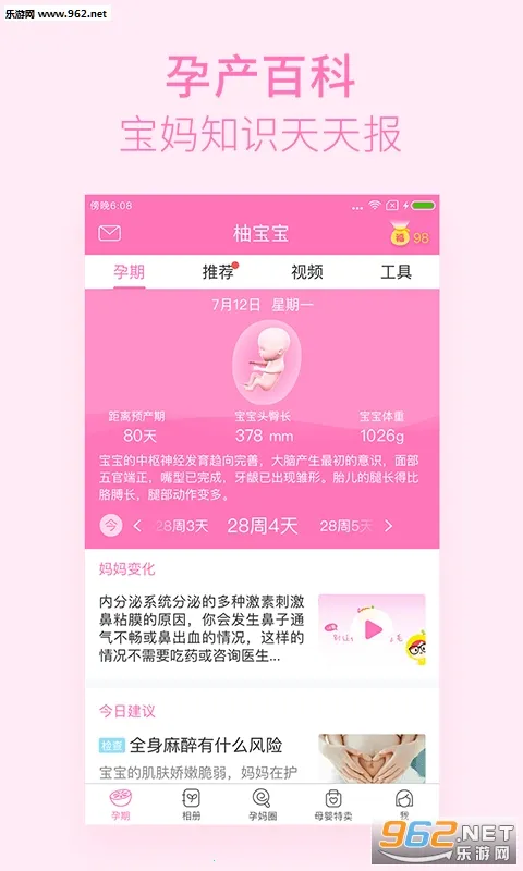 柚宝宝安卓版现改名宝宝记,是专为孕妈妈推出的孕育服务软件。能切换备孕、怀孕、育儿模式,提供各阶段知识与服务,还有交流社区、实用工具、母婴商城等,助力宝宝健康成长。