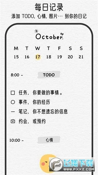 上百个原创设计贴纸表情是一大亮点,能随意放置在日记各处,充分表达心情。添加图片功能让记录更生动,还有多种可爱字体可选,满足个性化需求。