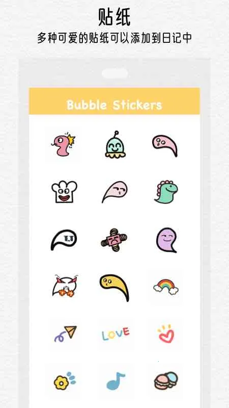 2. 贴纸丰富超有趣,拥有上百个原创设计贴纸表情,能随意放在日记任何角落,充分表达每一天的心情。