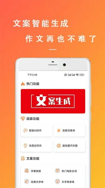 3. 功能丰富多元:整合多种实用功能,可快速找到并应用所需功能,全方位满足创作需求。从文案生成到伪原创,从违禁词查询到朋友圈防折叠,一应俱全。