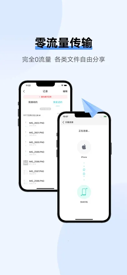 2. 零流量传输:无需消耗数据流量,也无需外部WiFi环境,通过手机自身热点进行面对面文件传输,经济环保。