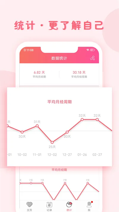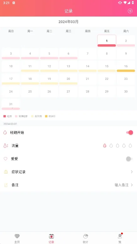2. 记录方便又准确:能轻松记录和管理经期各项生理指标,还可科学预测经期、安全期、易孕期等,让生理期一目了然,帮助用户更了解自己身体状况。