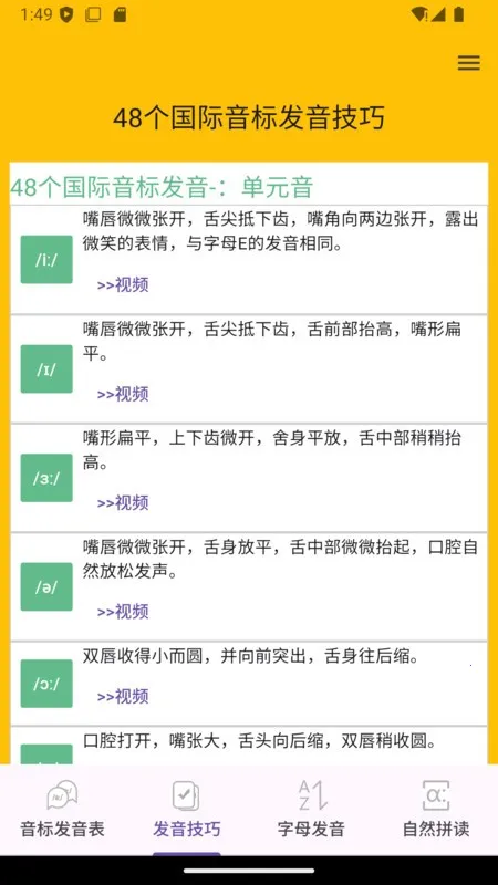 1. 标准真人发音:提供48个音标的标准真人发音,帮助学习者掌握正确发音方法。