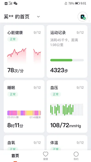 软件功能强大,能详细记录心脏、血压、血糖等各方面数据,还会记录日常运动数据并形成报表。其特色功能包括:血糖仪自动记忆测量,跟踪血糖变化;血压计轻松测血压,可绑定手机云端掌控;智能手环24小时实时监测心率,内置服药提醒,监测睡眠质量;血氧仪监测血氧动态。