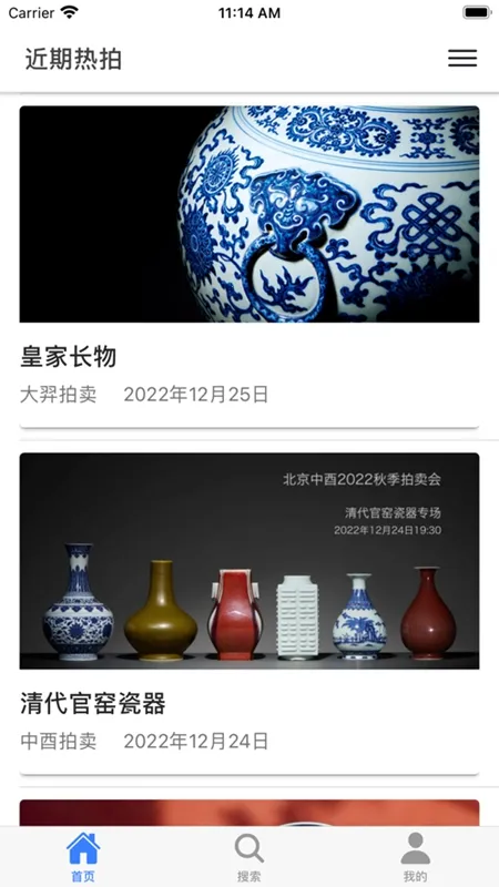 软件特色众多,如近期热拍可快速找到热门信息,搜索瓷器能精准查询相关艺术品,拍品详情可全面了解拍品,收藏拍品能保存感兴趣的信息,选择公司可查找特定公司的拍卖资讯,搜索记录方便回顾。