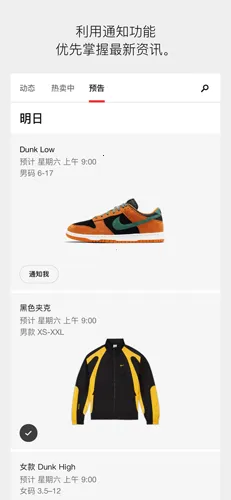 2. 全面鞋款信息:能关注整体鞋履系列,全面获取鞋款发售信息,不限于具体鞋型和配色。设有发售及配送状态提醒功能,方便及时了解相关情况。