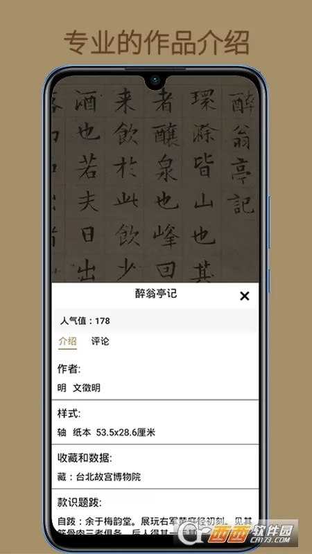 该应用的优势在于其海量的书画资料,从晋代到当代,涵盖了各个时期的名家佳作。这些资料图片高清无暇,色彩准确,绢丝可见,给人以接近实物的观赏感受。每天发布的最新收集资料,让藏品不断丰富,文字内容也逐渐完善。