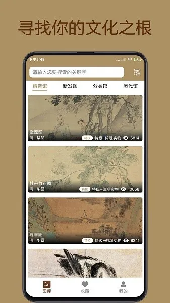 中华珍宝馆app由上海墨阁信息科技有限公司研发,提供海量晋代到当代的书画资料,图片高清无暇。有详细作品介绍,支持下载,能360度观察作品,适合文化欣赏者与书画学习者,助力传承中华文化。