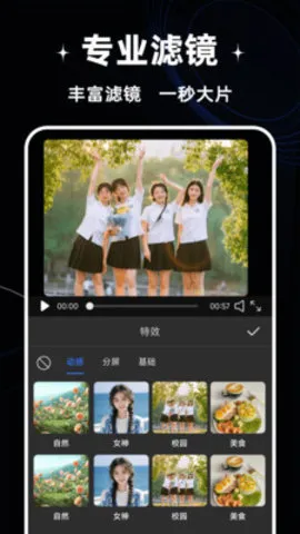 其核心功能精准视频剪辑,支持分割、裁剪、拼接、变速等基础操作,能灵活调整每一帧画面。智能音频处理,内置海量正版音乐库,支持一键添加背景音乐或导入本地音频,自由调节音量淡入淡出。动态字幕与文本,提供多种字体、颜色、动画样式,支持AI语音识别自动生成字幕。丰富滤镜与特效,涵盖电影感滤镜、转场特效、动态贴纸等,一键美化视频。高清导出无水印分享,支持多种分辨率及主流格式导出,默认无水印保存,方便分享至各大平台。