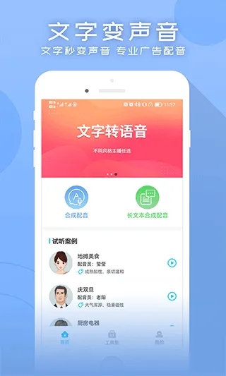 4. 专业的配音服务:提供丰富声音选项,涵盖男女老少、方言外语等风格。可试听真人样音选心仪配音员,也能试听合成样音选虚拟配音员音色,配合背景音乐一键合成专业配音效果。