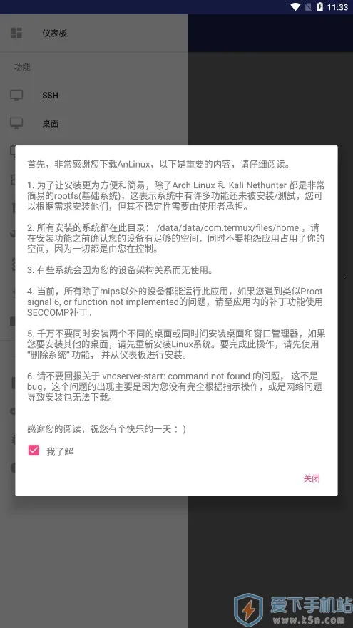 AnLinux2026官方正版是一款可在手机运行的Linux开源工具,集成终端环境,有自动化脚本,无需Root权限就能部署多种Linux系统,界面简洁,操作直观,支持多发行版,无广告干扰,还提供可视化教程。