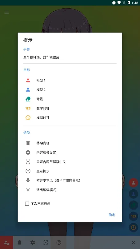 点击后可自定义时钟样式(数字风 / 指针风)、颜色、位置(建议放在背景角落,不遮挡角色)。