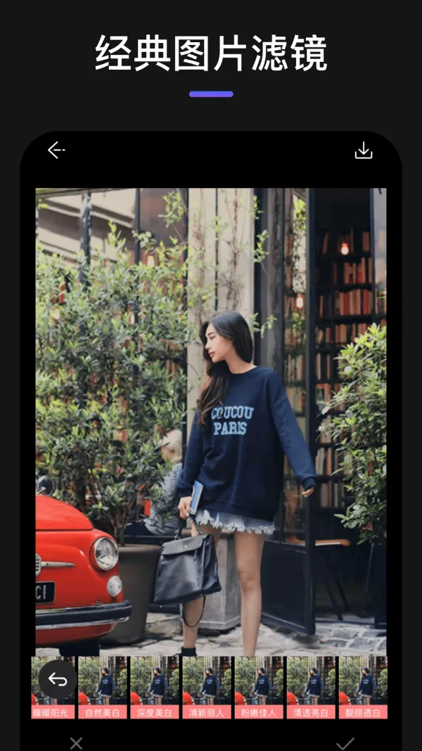 2. 滤镜素材超丰富:拥有海量滤镜,能满足各种照片场景需求,素材库内容丰富且实时更新,让你轻松找到合适滤镜与最新素材。