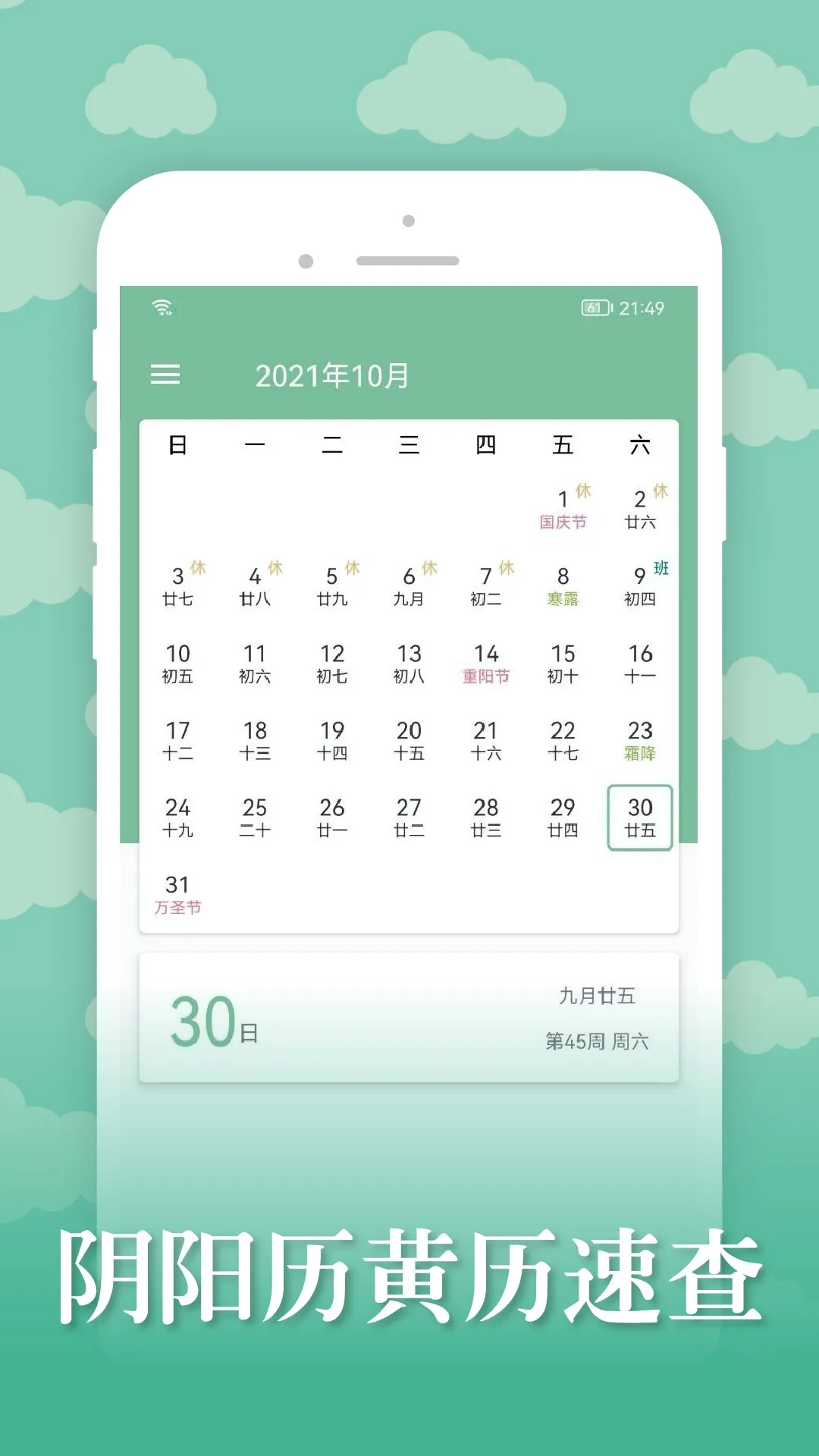 提供桌面小组件支持,重要日期、天气摘要、当日宜忌等核心信息实时显示,抬眼可见,省心省力。
