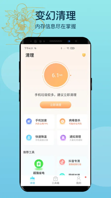 变幻清理 2026 官方正版是专注手机性能优化的智能清理工具。能深度扫描精准识别,高效清理冗余文件等。支持多模式,采用安全引擎,有电池健康分析等功能,集多种优化于一体,界面简洁无广告,适配多系统。
