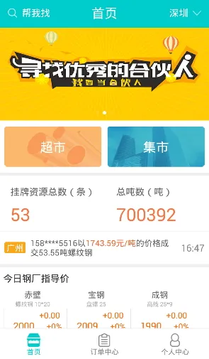 3. 便捷交易体验:没有过多中间商赚取费用,能快速掌握每日钢价,还可定位了解某地区钢材行情,方便查询订单数据,让买钢更轻松。