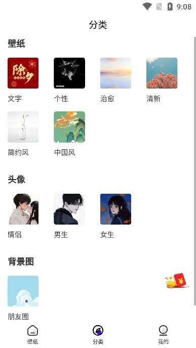 2. 分类清晰直观:按壁纸、头像、表情包等类型明确划分,查找筛选便捷高效,可顺着喜好快速定位所需。