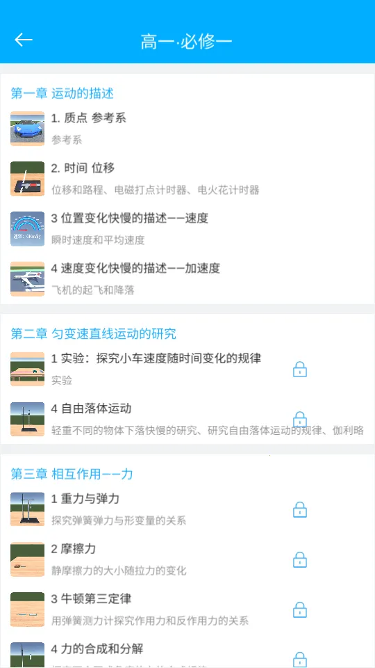 3. 打破时空限制,随时随地学习物理。学生不受实验室和实际器材的约束,在手机上就能完成各种物理实验,随时根据课本来学习新实验,也可依据实验梳理课本知识,方便又高效。