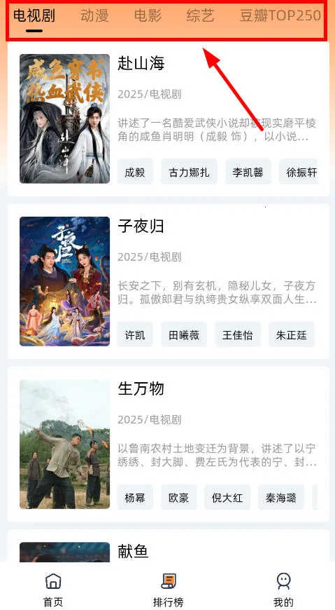 2、在首页浏览推荐的剧集,下滑可以找到更多类目的热门推荐;