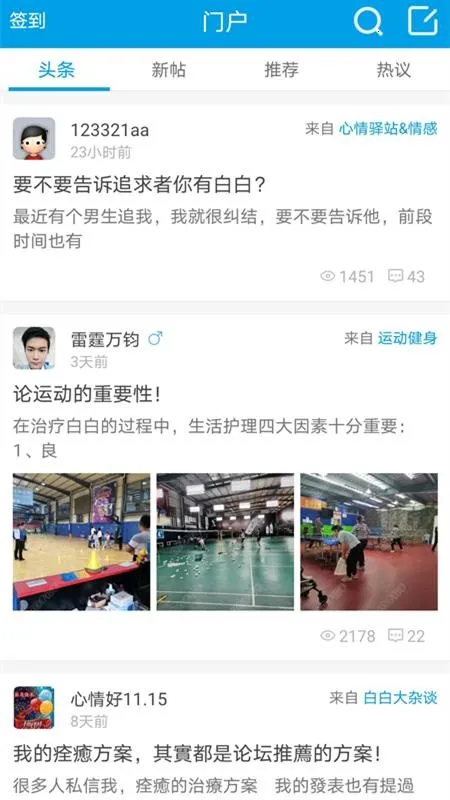 白白手拉手论坛前沿资讯能满足白癜风患者对前沿信息的需求。这款应用专为白癜风患者打造,功能超丰富。有诸多功能板块,像新手普及、活动、图片等,能帮患者更好地交流互动学习。用户随时能访问专区,注册后就能提问交流。它的周边功能很棒,能查看周边用户和帖子,还能知晓网友发帖位置。支持语音发帖,轻松录音上传,也能随时随地拍照上传多达5张照片。这里交流环境良好,支持分类信息和主题分类,社区新帖热帖实时更新,所有数据和网站实时同步。还有及时的消息推送,回复信息能及时通知,还能和好友实时语音交流。能让患者倾听到其他患者声音,获取前沿资讯,在探讨治疗经验、生活交流等方面带来极大便利,是白癜风患者交流的优质平台。
