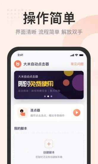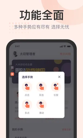 3、功能丰富用途广:可实现屏幕单点、多点循环连点、点击加滑动组合等各种手势,还能帮助抢单、抢购物券,自动重复操作,轻松实现按键精灵的效果,不管是抢红包做任务还是游戏挂机都适用。