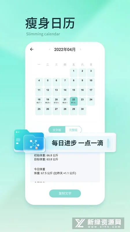 2. 助力减肥更有动力:能为正在减肥的用户实时记录每一天,让用户更有动力去减肥。