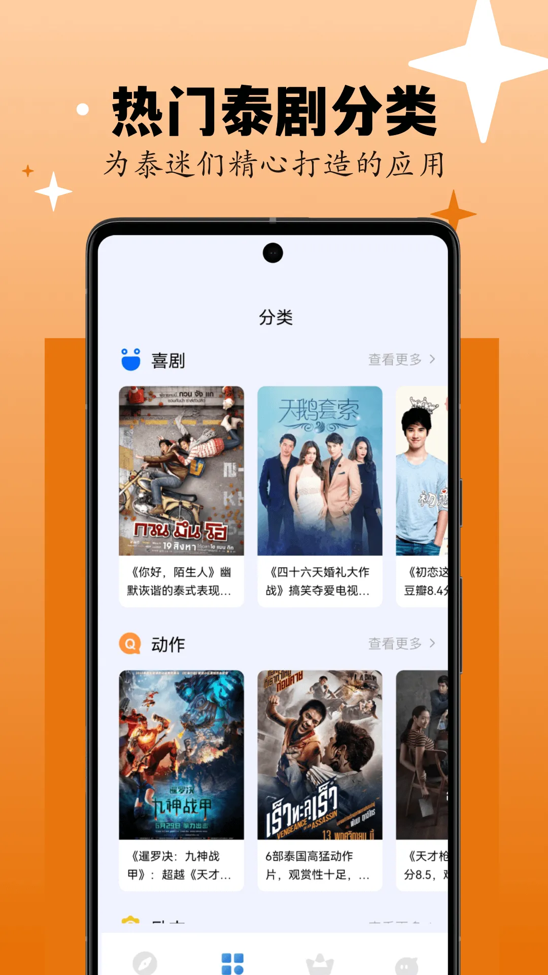 2. 分类细致全面:设有专门的影视榜单和影视分类,能让用户轻松找到想看的泰剧类型和剧集,所有泰剧作品均按照题材类型详细分类,还可通过影片的热度与评分快速筛选。