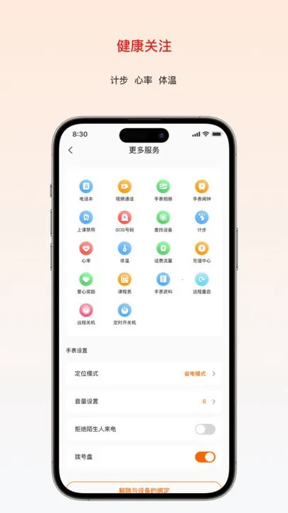 3、智能防护,构建多重安全防线。可自定义安全围栏,孩子进出区域即时推送通知;能按课表设定禁用时段,限制手表娱乐功能;严格管控手表通讯录,一键拒接陌生来电与短信。