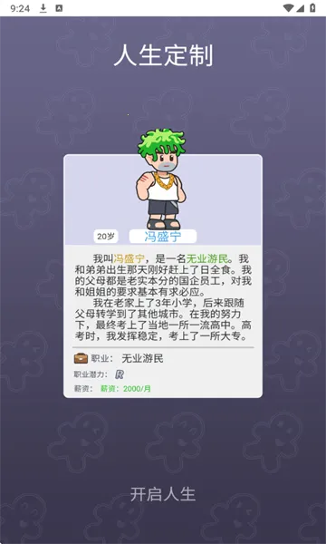 游戏以独特的文字叙述为核心玩法,从婴儿时期开启人生旅程,涵盖童年、教育、就业、爱情和组建家庭等阶段。玩家通过点击开启人生按钮,随机触发独特命运,每个选择都实时影响角色属性、人际关系与命运走向,真正实现千人千面。