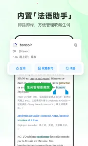 功能上,与法语助手无缝集成,划词搜索长按查词即指即译;支持批量下载离线收听;跟读打分能查看发音准确度以纠正问题;播放调节有8档语速和4种循环模式,还有单句精听听写测验。特色模块精听党、配音秀、学习计划、听力挑战等辅助学习效果显著。