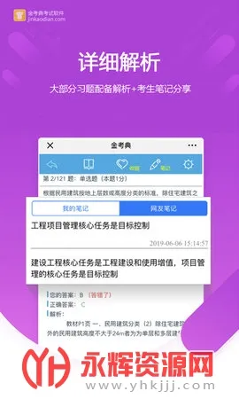 其优势显著。全面覆盖众多考试题库内容,像一级建造师、二级建造师、造价工程师等各类热门考试均有涉及。融汇百万考友学习数据笔记,配有详细解析,有助于引导做题方向与思考路线。提供最新一年考试真题,通过错题本自动更新生成功能,能精准查漏补缺,提升复习针对性与学习效率。