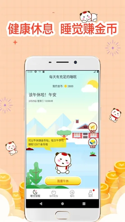 睡觉宝红包版是一款主打健康生活提醒的软件。它通过现金红包激励,督促用户养成良好睡眠习惯。用户坚持打卡能获金币奖励,可提现或换商品。