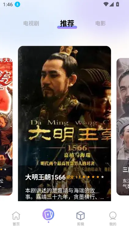 使用指南清晰明了。下载打开 APP 后,能翻看精彩影视推荐。找到喜欢的影视即可播放。还能从相册、链接录制等方式导入视频播放并编辑,可自由裁剪、变速、拼接,添加滤镜贴纸等。在个人中心能查看应用相关及反馈问题。