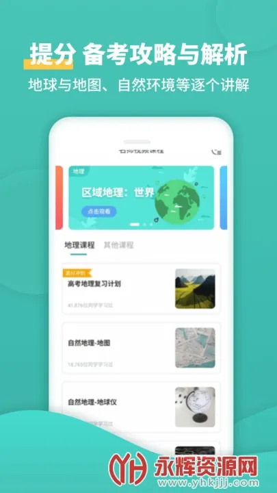高中地理2026最新版本是专为高中生打造的地理学习工具,涵盖各章节教学视频、真题练习、知识点总结等。有考点攻略、考题解析等功能,科学分类模块,百万考生在用,助你高效复习,轻松提分。